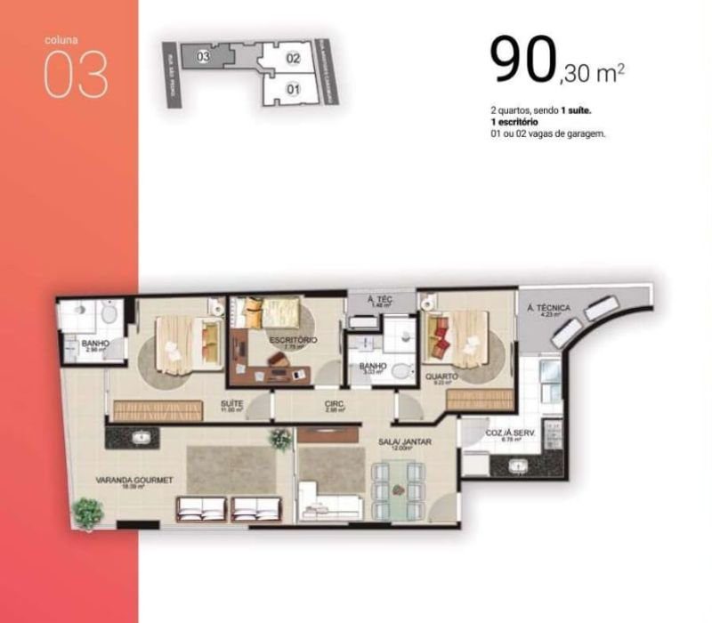 Coluna 3 - 90,30m² Sol da manhã a partir de R$ 622.000,00