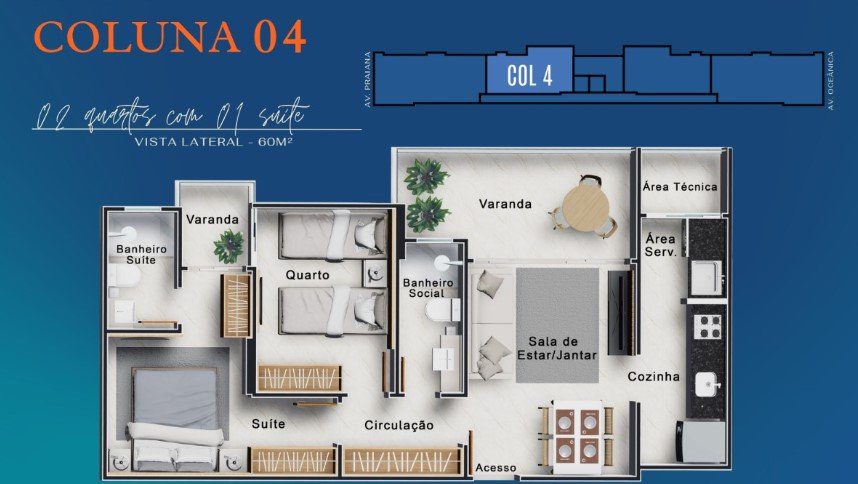 Coluna 4 com 2 quartos - a partir de 722.000,00***