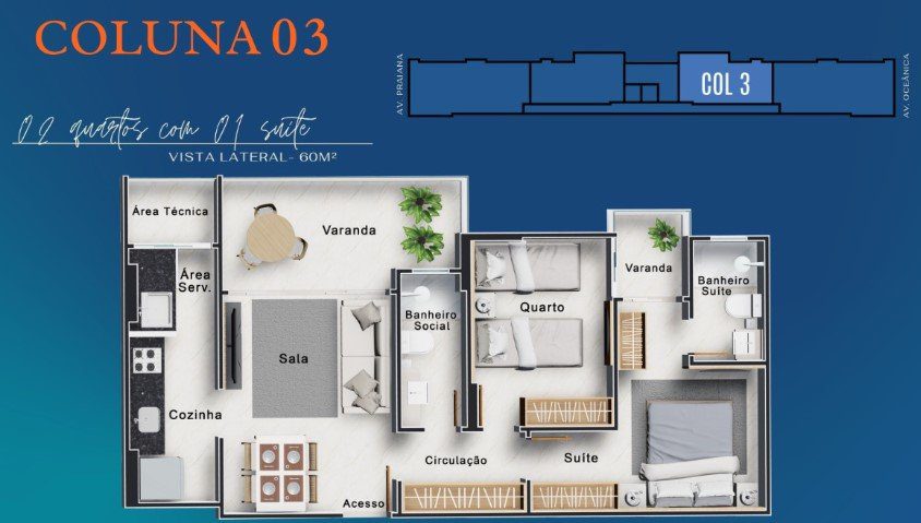 Coluna 3 com 2 quartos - a partir de 700.000,00***