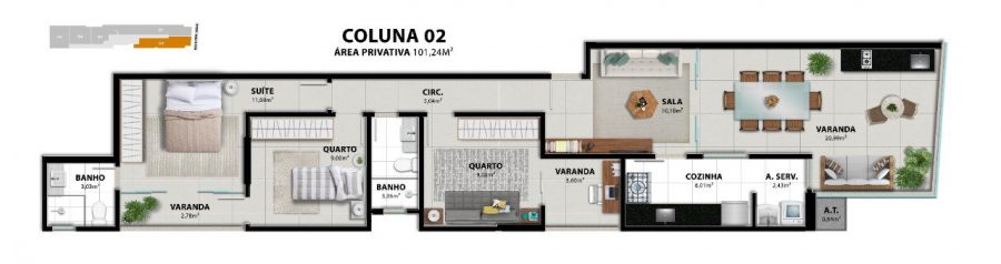 Coluna 2 com 3 quartos - 101,24m² a partir de: R$ 1.037.500,00