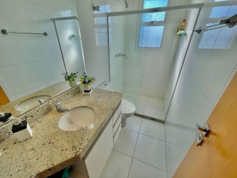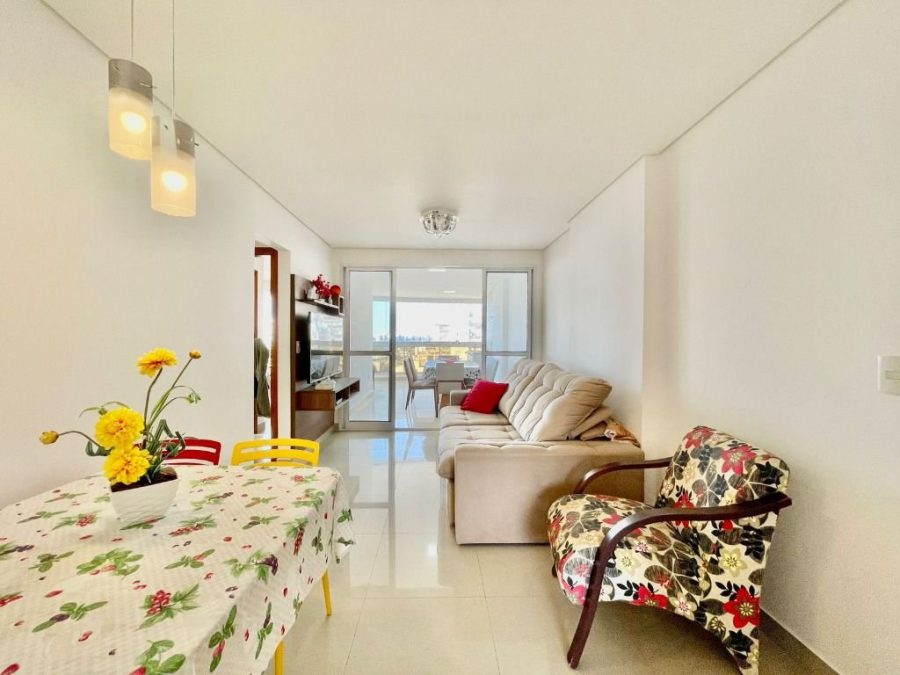 Apartamento de 3 quartos, sendo 1 suíte, sala ampla conectada a varanda gourmet, já com fechamento de cortina de vidro, banheiro social, cozinha com modulados, área de serviço e 2 vagas de garagem.