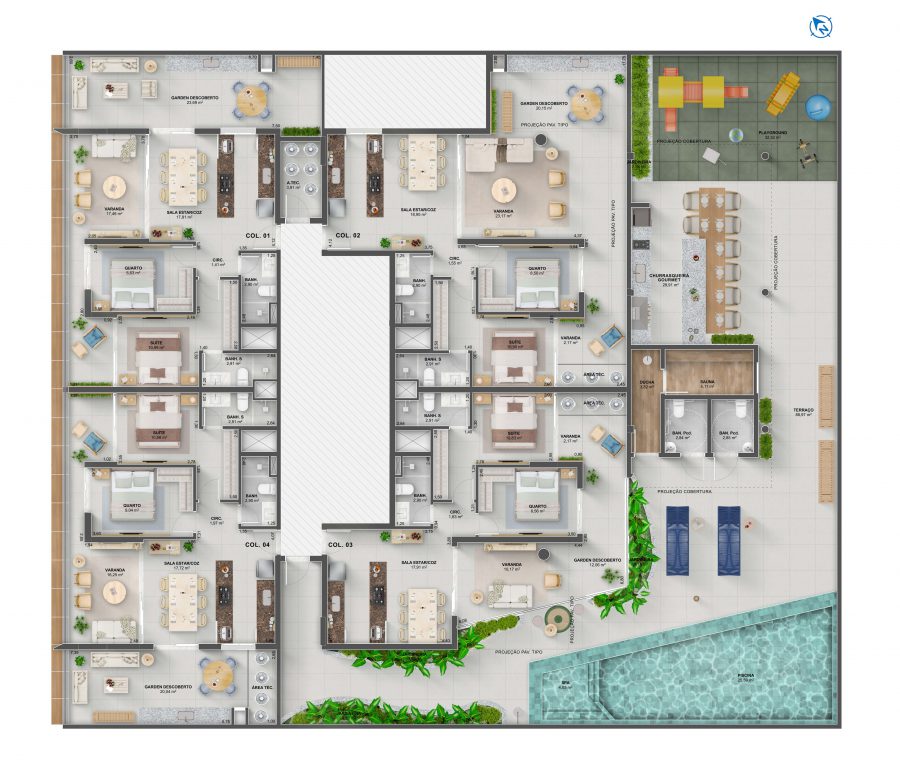 Acesso facilitado, sistema de portaria virtual, delivery para guarda de encomendas e aplicativo de gestão condominial. Cada unidade inclui uma vaga de garagem para uso do condomínio.