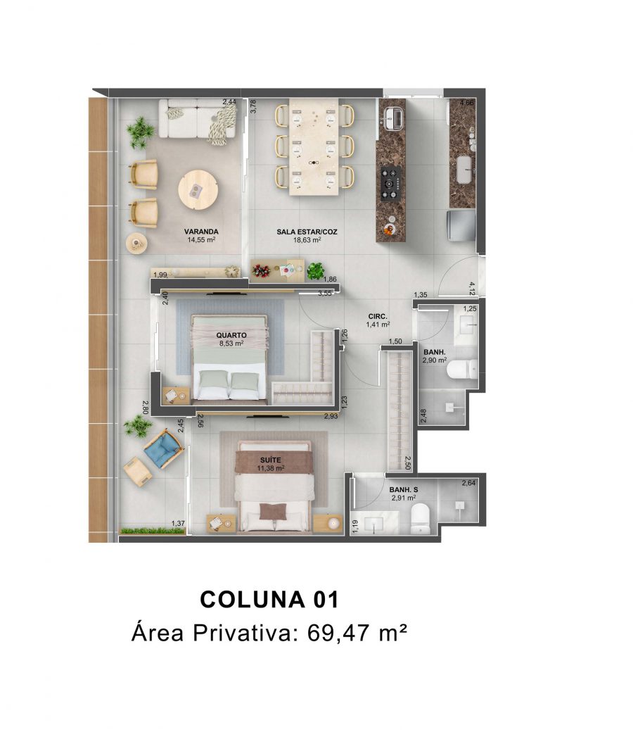 Área Total: 70 m² (R$ 10.241/m²)Área Privativa: 70 m²