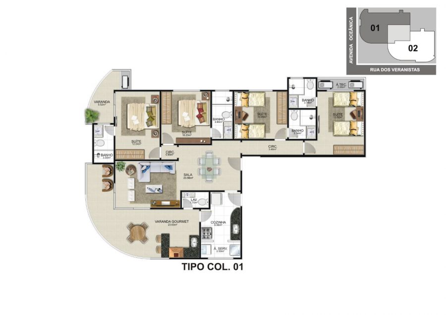 Com planta de 135,59m² cada detalhe reflete a qualidade da construtora renomada em Guarapari.