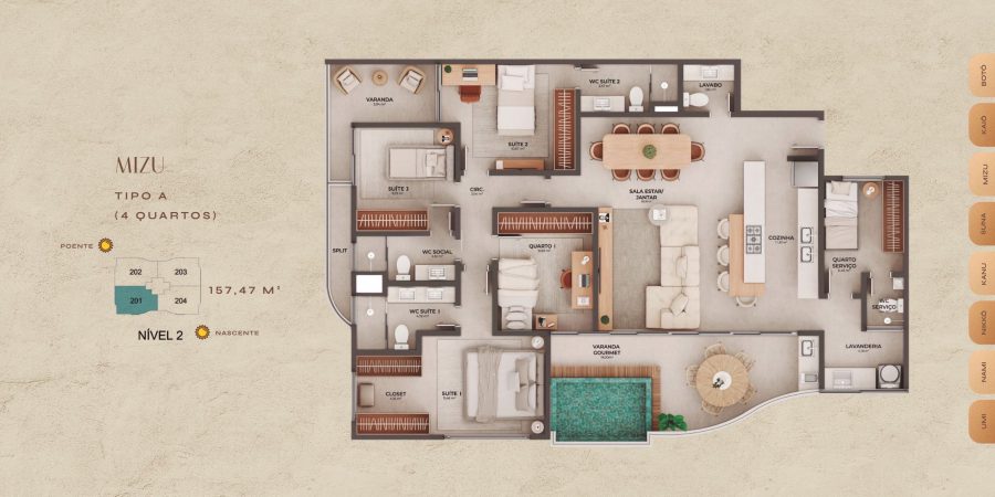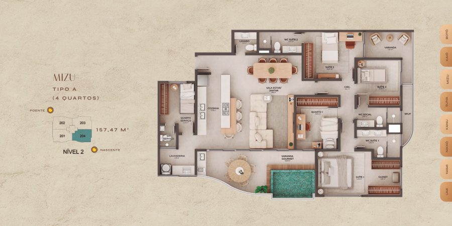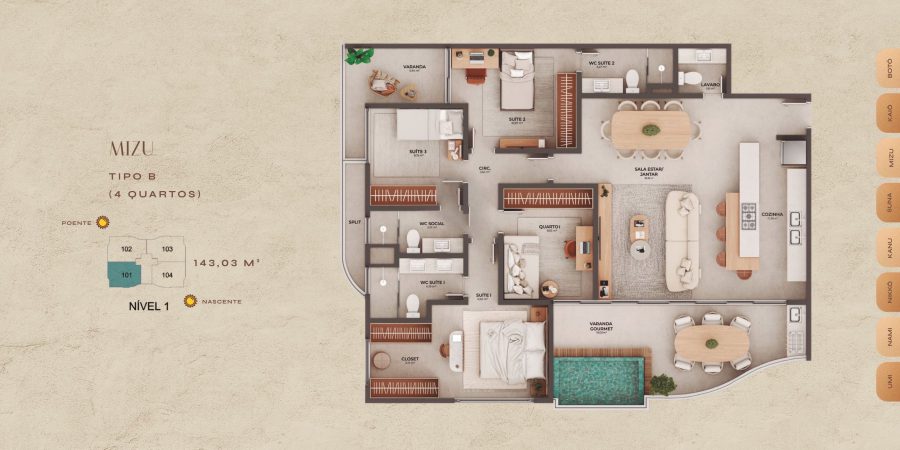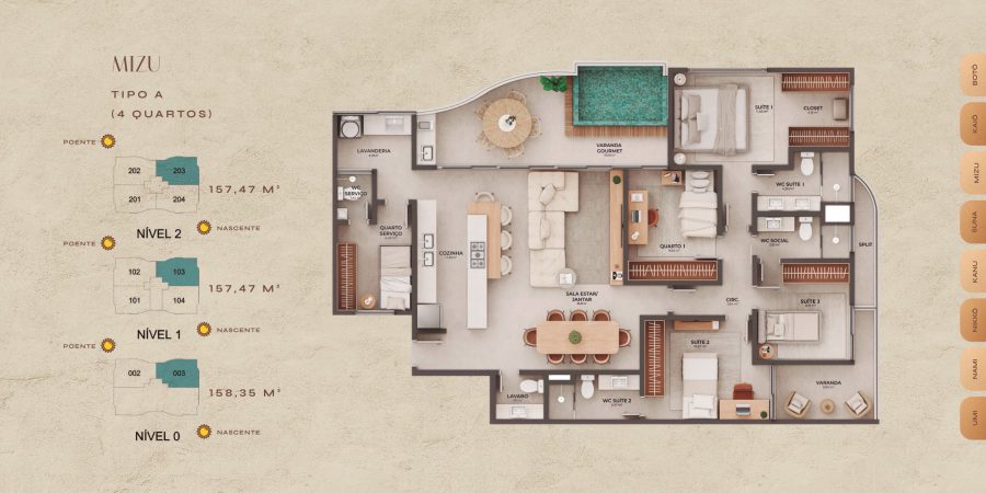 Bloco Mizu 4 quartos sendo 3 suíte com 2 vagas
