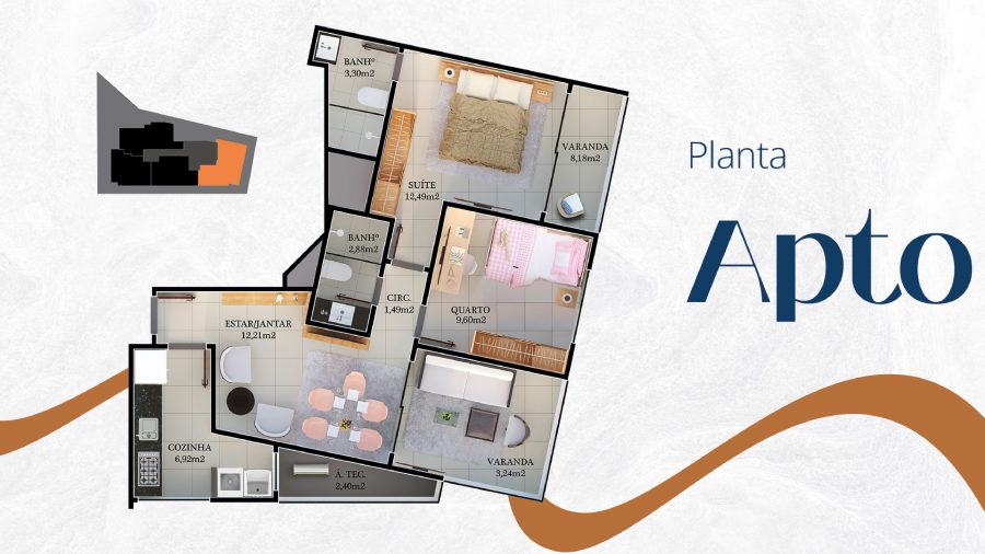 •COLUNA 01 - 73,45m² - 2 QUARTOS