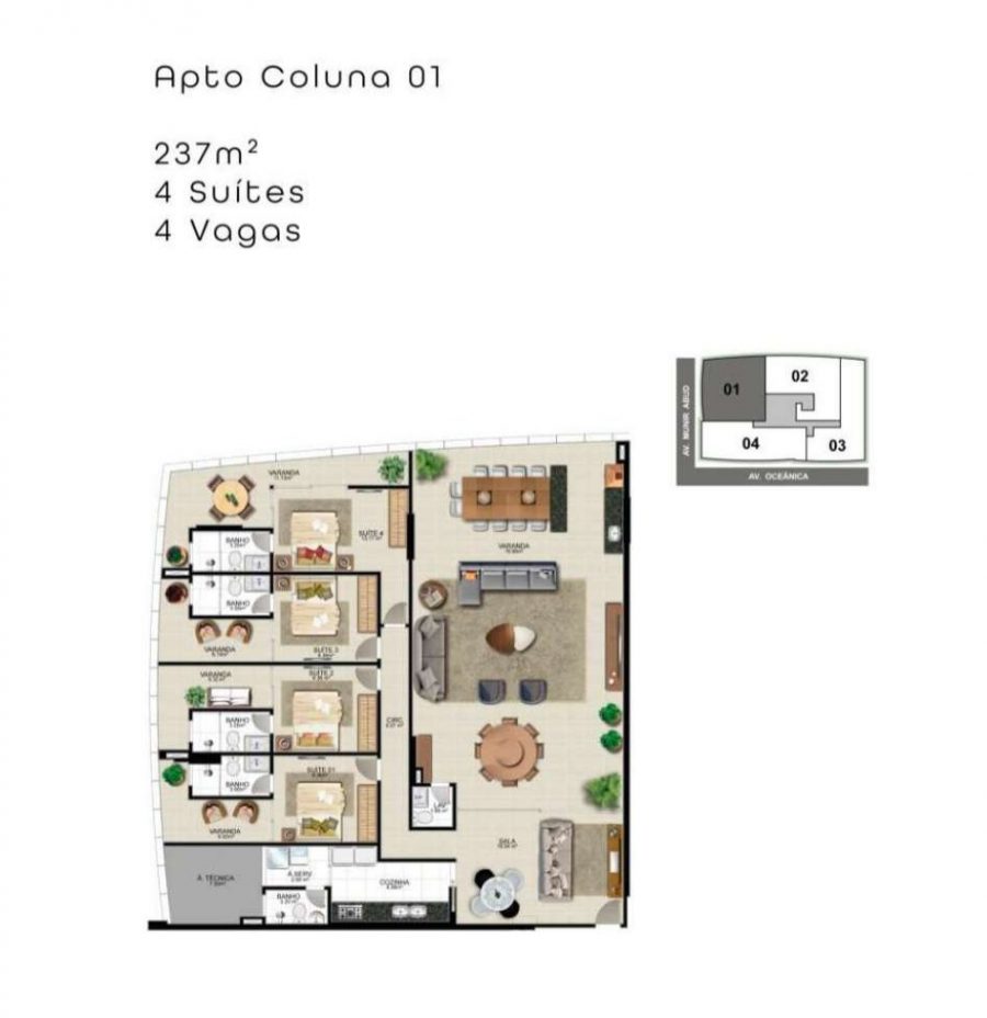 Coluna 01 - 237m² 4 suítes - R$ 2.044.784,50
